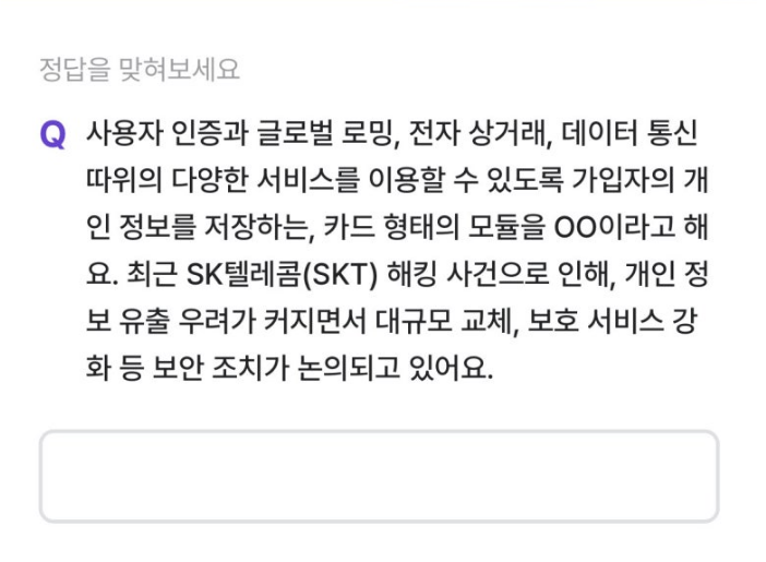 이요할 수 있도록 가입자의 개인 정보를 저장하는, 카드 형태의 모듈을 ㅇㅇ이라고 해요.